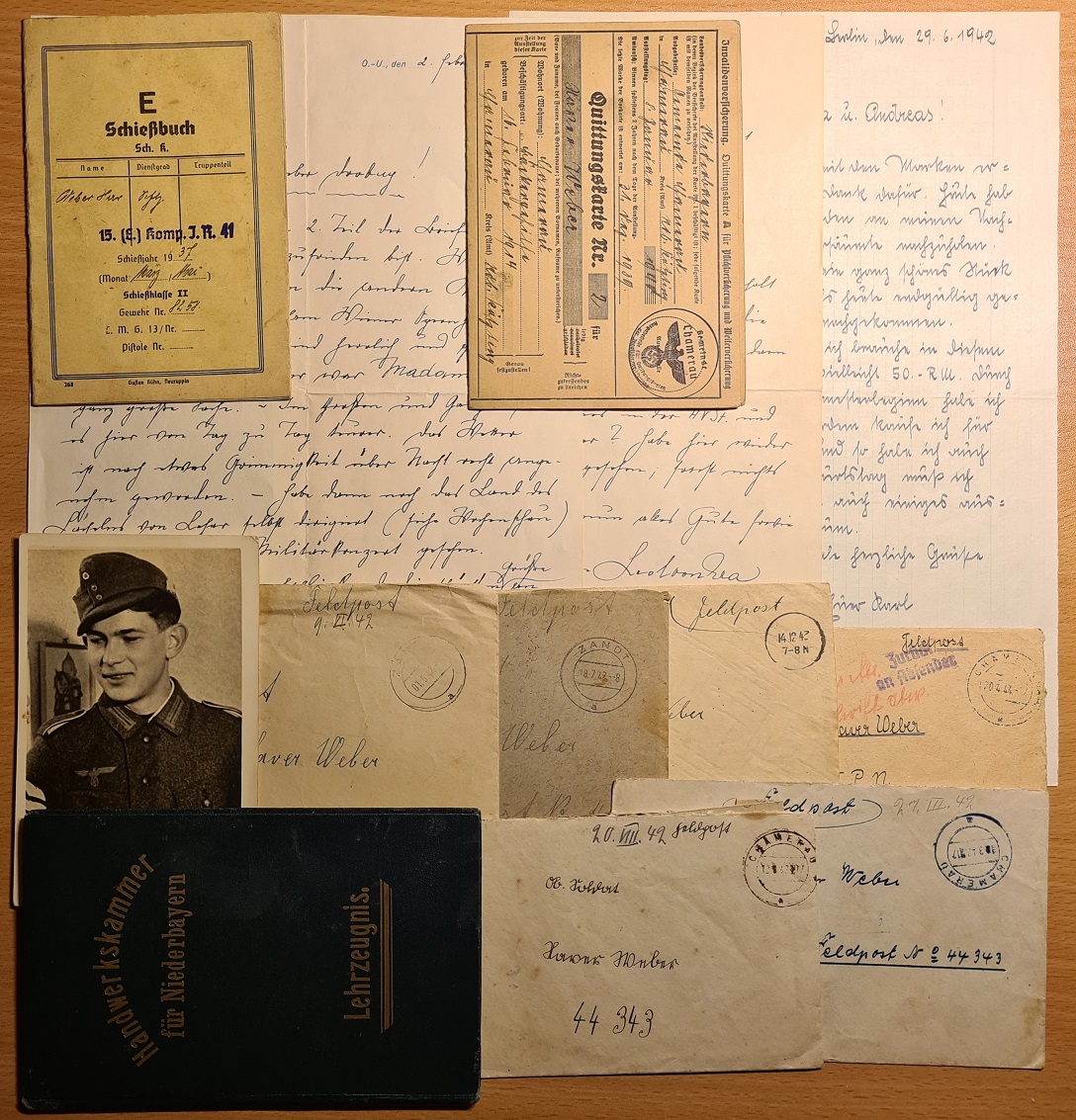 Fire sider feltpost 1940 – 1944 montert på Leuchtturmblad
